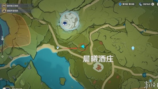位于大地图“晨曦酒庄”的“晨”字正上方,山坡上。