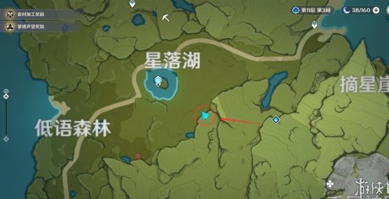 位于星落湖右下的半山腰,可按图所示传送到雷本“仲夏庭院”再一路向西,跳下来即到。