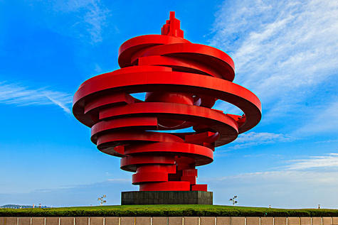 青岛的五四广场是青岛的一景,尤其是夜晚的灯光秀。5月份到8月份,夏季是青岛旅游的黄金季节。五四广场因“五四运动”而得名,标志性雕塑“五月的风”,以螺旋上升的风,大红色的造型,体现了“五四运动”反帝反封建的爱国主义基调和民族力量。