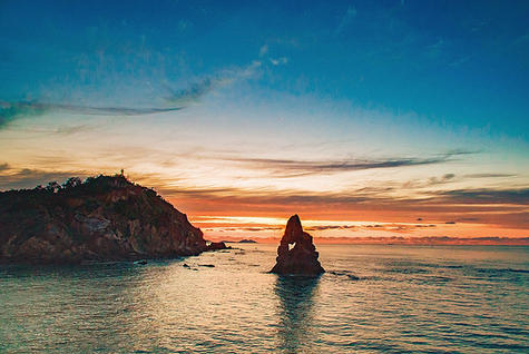 秋冬季节,大气通透,海水与空气温差大,在浴场东侧看太阳紧贴石老人,而且在不同的气象条件下太阳每次升起来的形态都不尽相同,有的时候很扁,有的时候很圆,甚至有的时候会因为光的折射镶上一层绿色的边缘,这一切都给石老人日出增添了各种奇妙的因素。