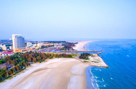 银滩长度惊人,大约有20公里长,以此自称天下第一滩。度假区拥有3个大型海水浴场,可供10万游人沐浴,海岸线上开展多种水上游乐项目。银滩之所以为银色,是因为里面是大量贝壳的粉末,这里的沙滩细腻如土。从西向东沿着海边公路开车,这一路海边的景象很一致。沙滩质量仅次于青岛,很多地方都可以下水。由于没有海湾屏蔽,所以浪大一些。本人前年去玩,正逢低潮位,结果大浪把海底的泥巴搅起来了,水质就不太清了。这个地方因为附近的房地产开发,导致自然的味道少了些,专门赶来游泳就不太推荐,路过还可以来玩。