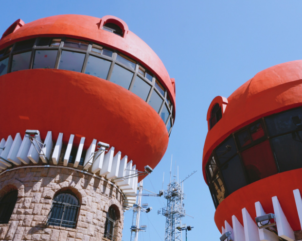 信号山的设计别具匠心,特别是山顶三个不同高度的红色圆顶蘑菇楼,它寓意中国古代用于传递信号的三支红色火炬。坐落在信号山的观景楼上,极目远眺,青岛的全貌及汇泉湾的美景尽收眼底。美丽的栈桥、小青岛与碧蓝的大海交相辉映,岛城的红瓦绿树、碧海蓝天,山光水色在这里可一览无余。信号山茶楼前临碧海、背依青山,会让您在游玩中得到休闲,在休闲中尽情地享受美好的自然风光。