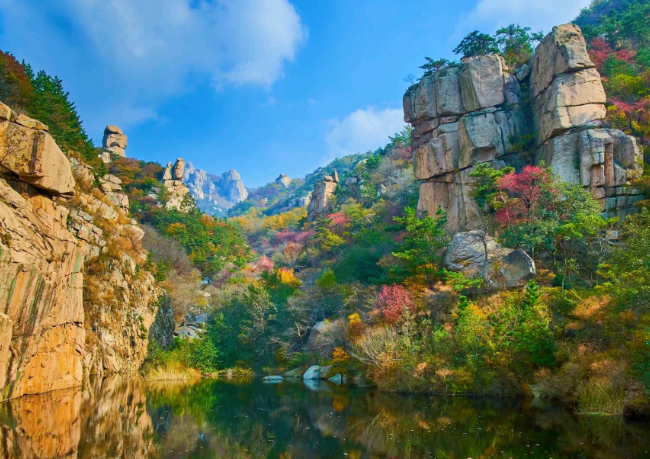北九水在山东崂山白沙河上游。白沙河源出山顶北麓,河水经山脚而折流,有九折;人行河畔小路,转折处须涉水而过,亦九涉;每涉一次为一水,故称九水。九水又分内九水、外九水(即北九水)和南九水三路,其中以北九水的景观最为著名。北九水是崂山风景区的一条旅游主线,经过半年多的开发建设,新的九水更加体现了“九水十八潭”的自然风貌。北九水为白沙河中游的峡谷地带。白沙河发源于巨峰北麓海拔800多米处的天乙泉,始名凉清河,中为九水。北九水因水有九折而得名,以北九水疗养院“九水界桥”为界,分内、外九水。涧水自上顺流而下,遇峰崖必折,折处必弯,弯处必漩,漩处必涌一潭澄水,在崂山十二景中称“九水明漪”。九水风光素被誉为“滩峡奇秀,清流急湍,峭壁危岩,水作龙吟,石同虎距,音乐图画,文本天成。”外九水自我乐村菊湾溯至北九水疗养院,全长6.5公里。