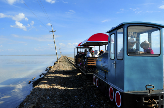 茶卡盐湖气候温凉,干旱少雨,属高原大陆性气候,年平均气温4℃,年平均降水量210.4毫米。湖面海拔3100米,长15.8千米,宽9.2千米,呈椭圆形,总面积105平方千米。