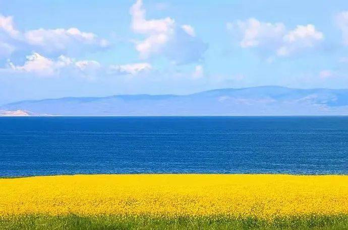 青海湖在不同的季节里,景色迥然不同。夏秋季节,青海湖畔山清水秀,辽阔起伏的草原就像是铺上一层厚厚的绿色的绒毯,数不尽的牛、羊、马犹如五彩斑驳的珍珠撒满草原,湖畔大片整齐如画的农田麦浪翻滚,菜花泛金,那碧波万顷,水天一色的青海湖,好似一泓玻璃琼浆在轻轻荡漾。而寒冷的冬季到来时,青海湖冰封玉砌,银装素裹,就像一面巨大的宝镜,在阳光下熠熠闪亮,终日放射着夺目的光辉。