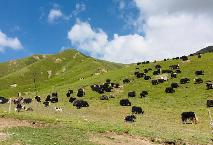 三、祁连山草原每年7、8月间,与草原相接的祁连山依旧银装素裹,而草原上却碧波万顷,马、牛、羊群点缀其中。祁连山的平均山脉海拔在4000米-5000米之间,高山积雪形成硕长而宽阔的冰川地貌,奇丽壮观。