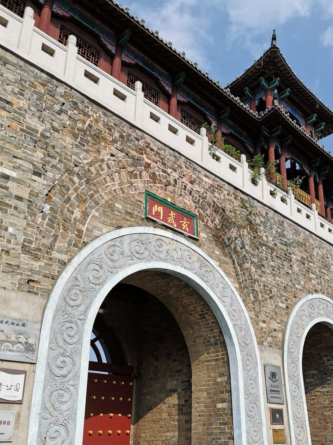 清宣统元年(1909),两江总督端方、张人骏为方便参观“南洋劝业会”的来宾游览玄武湖,在玄武湖明城墙的西端开辟一新城门,1910年完工。1928年,改为“玄武门”。蔡元培先生应邀书写了门名。1934年添辟左右两个门洞。1984年,建造了玄武门城楼,经数次修缮保留至今。该门是玄武湖五大门中最主要的一个。