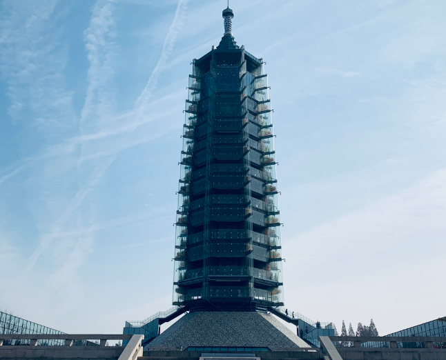 遗址公园中备受瞩目的琉璃宝塔并未按照历史原样复建,而是以轻质钢架玻璃保护塔的形式重现,在完整保护遗址的前提下赋予其象征意义与内涵,留给每个人对于这已逝的宏构和盛景无限的想象。