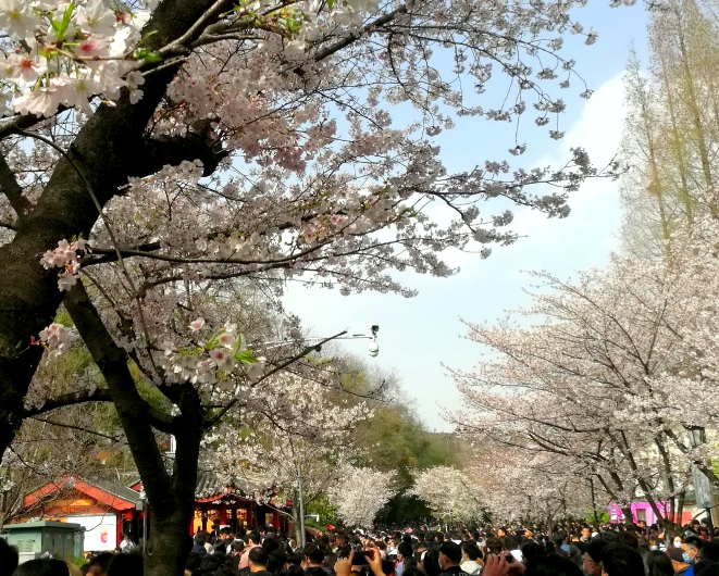 玄武湖景区的樱花近4300株,共有早、中、晚樱36个品种,目前进入盛花期的主要是中樱品种。据介绍,目前玄武湖的早樱花期已经结束了,以染井吉野为主的中樱品种已经进入了最佳观赏期,主要的分布地点位于玄武门至解放门的明城墙环湖赏樱风光带、樱洲、芳桥以及情侣园、十里长堤。