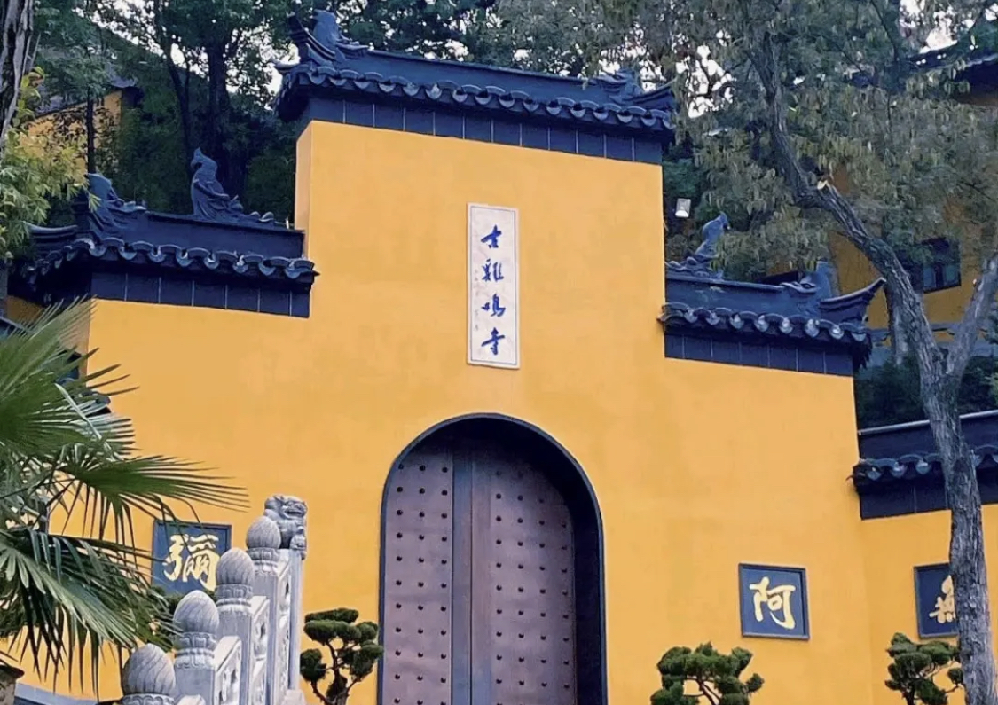 鸡鸣寺山门位于鸡鸣寺路左侧石级上,山门正中书写“古鸡鸣寺’四个金字。鸡鸣寺内现有大雄宝殿、观音楼、韦驮殿、志公墓、藏经楼、念佛堂、药师佛塔、胭脂井、豁蒙楼、景阳楼等主要建筑。大雄宝殿内奉祀三宝佛,外山门、三大士阁、钟鼓楼、禅房、素菜馆等建筑占地面积约5万平方米。山门牌坊“鸡鸣寺”由著名书法家、前中国佛协会长赵朴初所题,并有释定持、朱帆、余藻华等名家题撰的楹联墨宝。