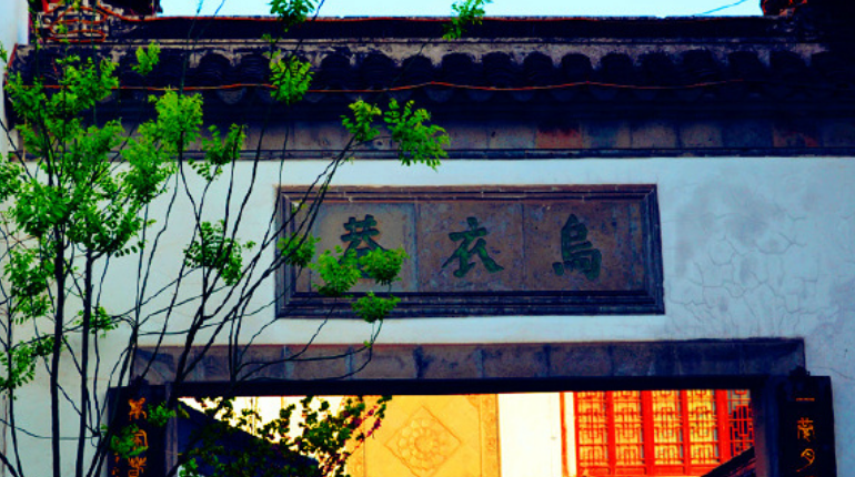 乌衣巷位于夫子庙西南数十米,是一条幽静狭小的巷子,原为东晋名相王导、谢安的宅院所在地。据宋代《景定建康志》卷十六引《丹阳记》,此地原为三国吴乌衣营所在,因而得名。为纪念王导、谢安,在乌衣巷东曾建有来燕堂,建筑古朴典雅,堂内悬挂王导、谢安画像,仕子游人不断,成为瞻仰东晋名相、抒发思古幽情的地方。