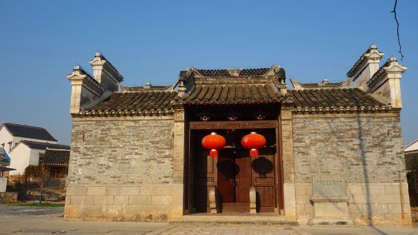 位于潘氏住宅东侧,坐北向南,东西有马头墙,大门两侧各置青石户对,高约0.8米。