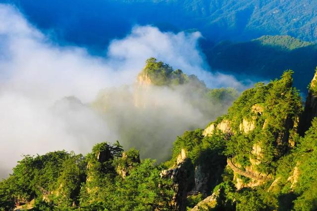 此时也是老君山举办“观海避暑节”系列活动的月份。7-8月份,雨过天晴后的傍晚和第二天清晨,云海出现的概率非常大,特别是连雨天,会看到大范围且持续时间长的云海。想要看到云海,去山顶是绝佳观景点。山顶金顶道观群的五母金殿、玉皇顶、亮宝台等都是最佳观看云海的位置。