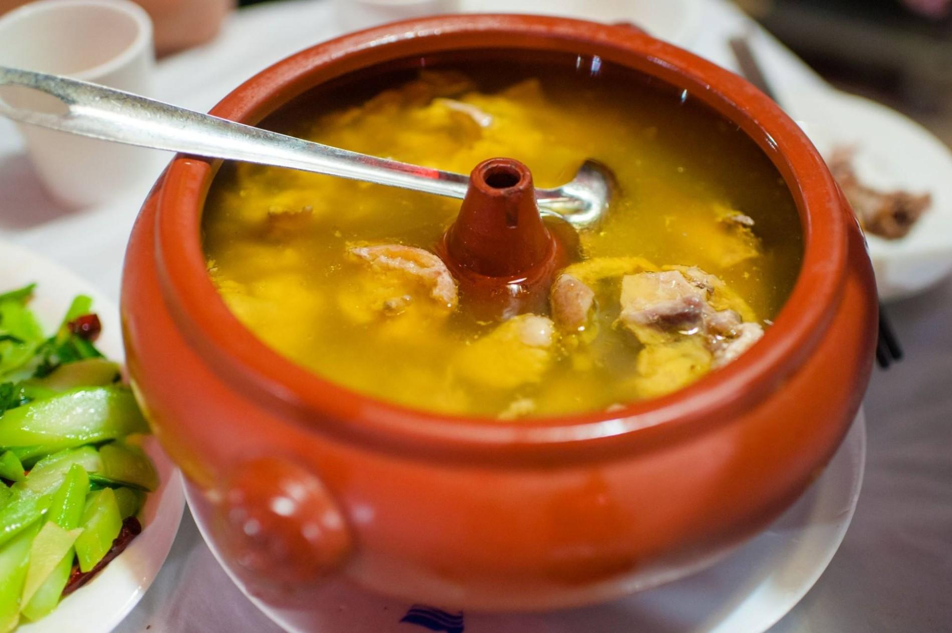 汽锅鸡是云南的名菜之一,在汽锅下放一盛满水的汤锅,然后把鸡块放入汽锅内,纯由蒸汽将鸡蒸熟。保持了原汁原味,肉嫩香,汤清鲜。汽锅常以三七、虫草加入,有滋补之效。