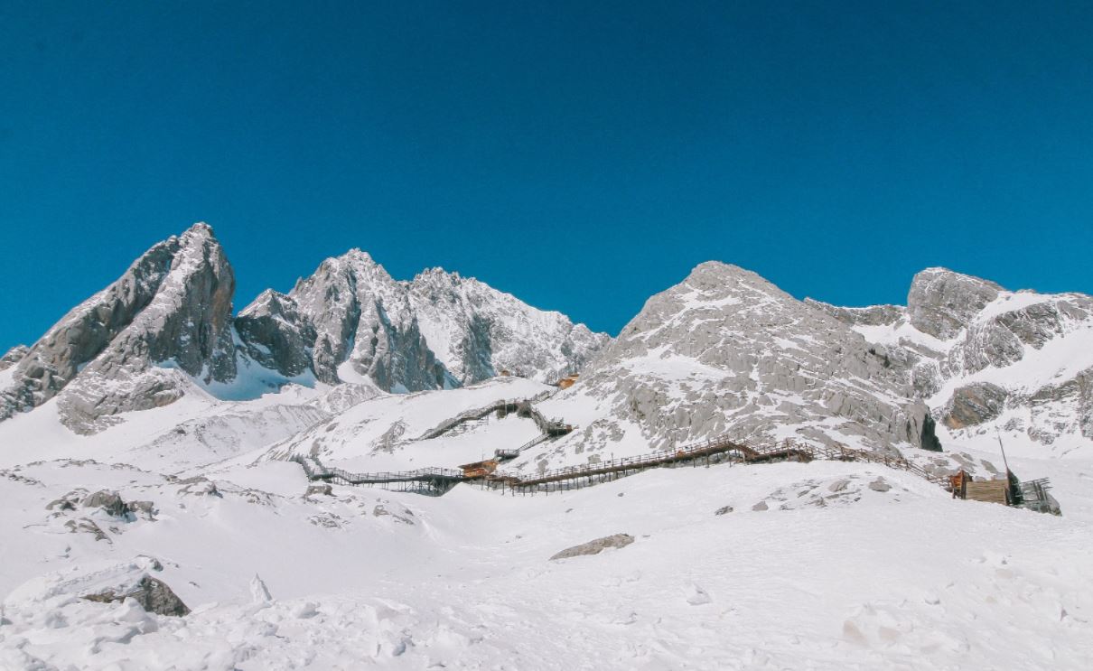 玉龙雪山为云南省丽江市境内雪山群,东界丽(江)鸣(音)公路,西临虎跳峡涧、南起玉湖,北至大具下虎跳峡口。玉龙雪山在纳西语中被称为“欧鲁”,意为“天山”。其十三座雪峰连绵不绝,宛若一条“巨龙”腾越飞舞,故称为“玉龙”。