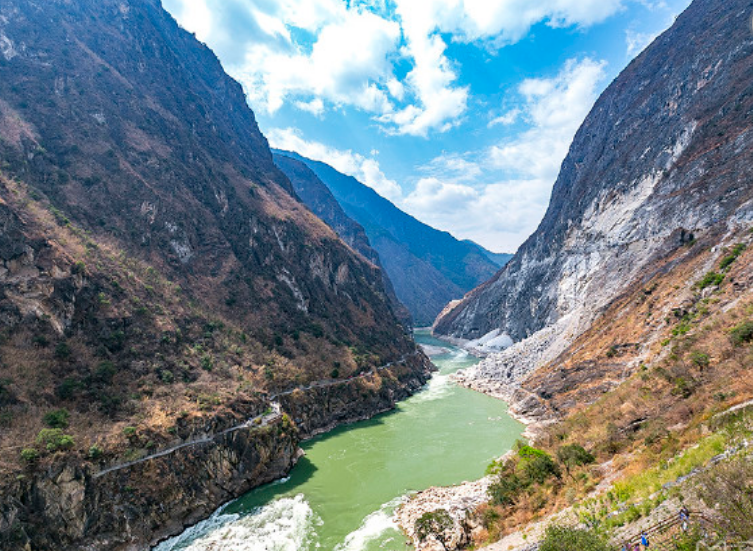 虎跳峡又称“金沙劈流”,位于丽江玉龙雪山与哈巴雪山之间,是世界上最深的大峡谷。