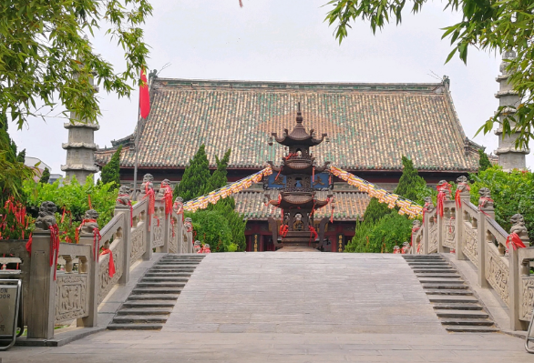 开封大相国寺是中国汉传佛教十大名寺之一,国家AAAA级旅游景区,位于中国河南省开封市,始建于北齐天保六年(西元555年)。开封大相国寺为中国传统的轴称布局,主要建筑有大门、天王殿、大雄殿、八角琉璃殿、藏经楼等,由南至北沿轴线分布,大殿两旁东西阁楼和庑廊相对而立。