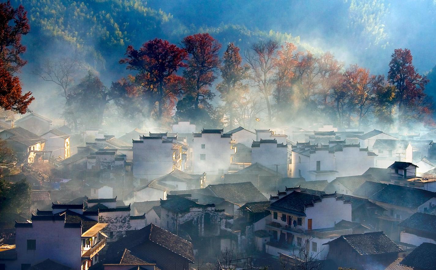 因特殊的山区地形和气候形成石城独特的晨雾景象,红枫、青山、粉墙、黛瓦都沉浸在缥缈朦胧的雾气和袅袅炊烟中,聚而不散,若隐若现,形成了如天上仙境般的梦幻景象。其间过程会随着晨雾和阳光变化,在不同时段会呈现出不同的唯美风景。