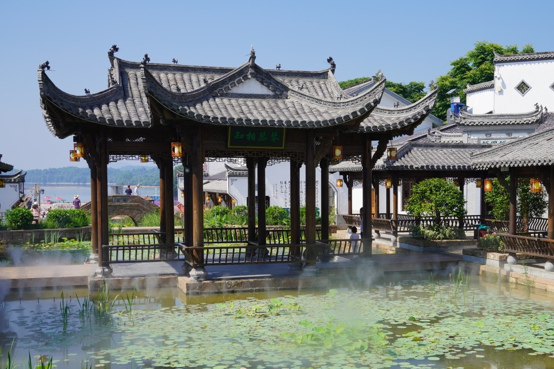 桃花岛位于仙女湖风景区新码头,因岛上遍植桃花而得名。景区大门是一座仿古城墙式的建筑,很多墙砖上刻有“喻南学社”,“红德润堂”,“平恒公馆”,“宋灵杰墙”,“新喻县城砖”等铭文,原来这是建设者利用新余旧城改造时废弃的清明古砖修造的。