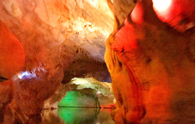 涵虚洞涵虚洞入口在半山腰,会定时由导游带进洞口,虽然这个洞内钟乳石很多已经停止生长,不像银子岩正处于壮年期,但这一溶洞最大特色是落差极大,而且最后从洞底坐船驶出洞口,也不另外收费,绝对良心景点。