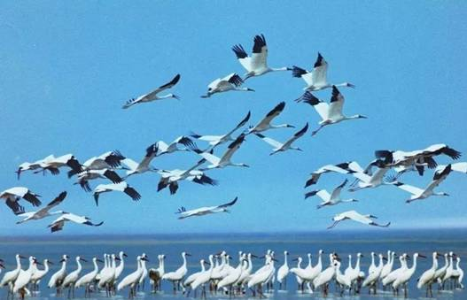 在这片区域,能够看到成百白鹤和上千灰鹤齐聚的壮美场景。