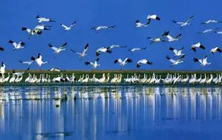 鄱阳湖是中国第一大淡水湖,也是亚洲最大的候鸟越冬地,素以“候鸟乐园”和“鹤类王国”著称,每年来鄱阳湖越冬的国家重点保护和濒危鸟类100多种。