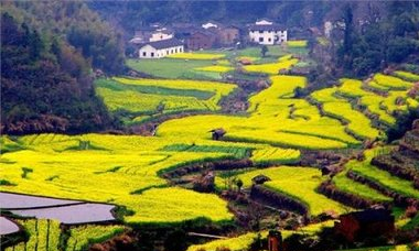 江西是油菜花大省,江西最美丽的油菜花在婺源“江岭”和“篁岭”,走进江岭和篁岭,粉红的桃花、洁白的梨花与层层金黄的梯田油菜花、白墙黛瓦的民居相辉映,构成一幅幅唯美的天然画卷。婺源篁岭被誉为“全球十大最美梯田”之一。