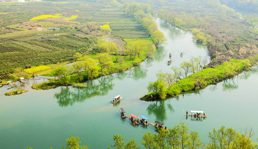 月亮湾,其实就是在去李坑的路上路过的一片月亮形状的小岛,在月亮湾的旁边可以望到一片小村庄和错落的稻田。观赏月亮湾的最佳角度在附近的山上,可以从旁边的一条小路上山。山上特意搭建了一个小的观景台,从观景台望下去,可以看出月亮的月牙完整形状。如果是油菜花开的旺季的话,整个月亮呈现金黄色的,异常惊艳。