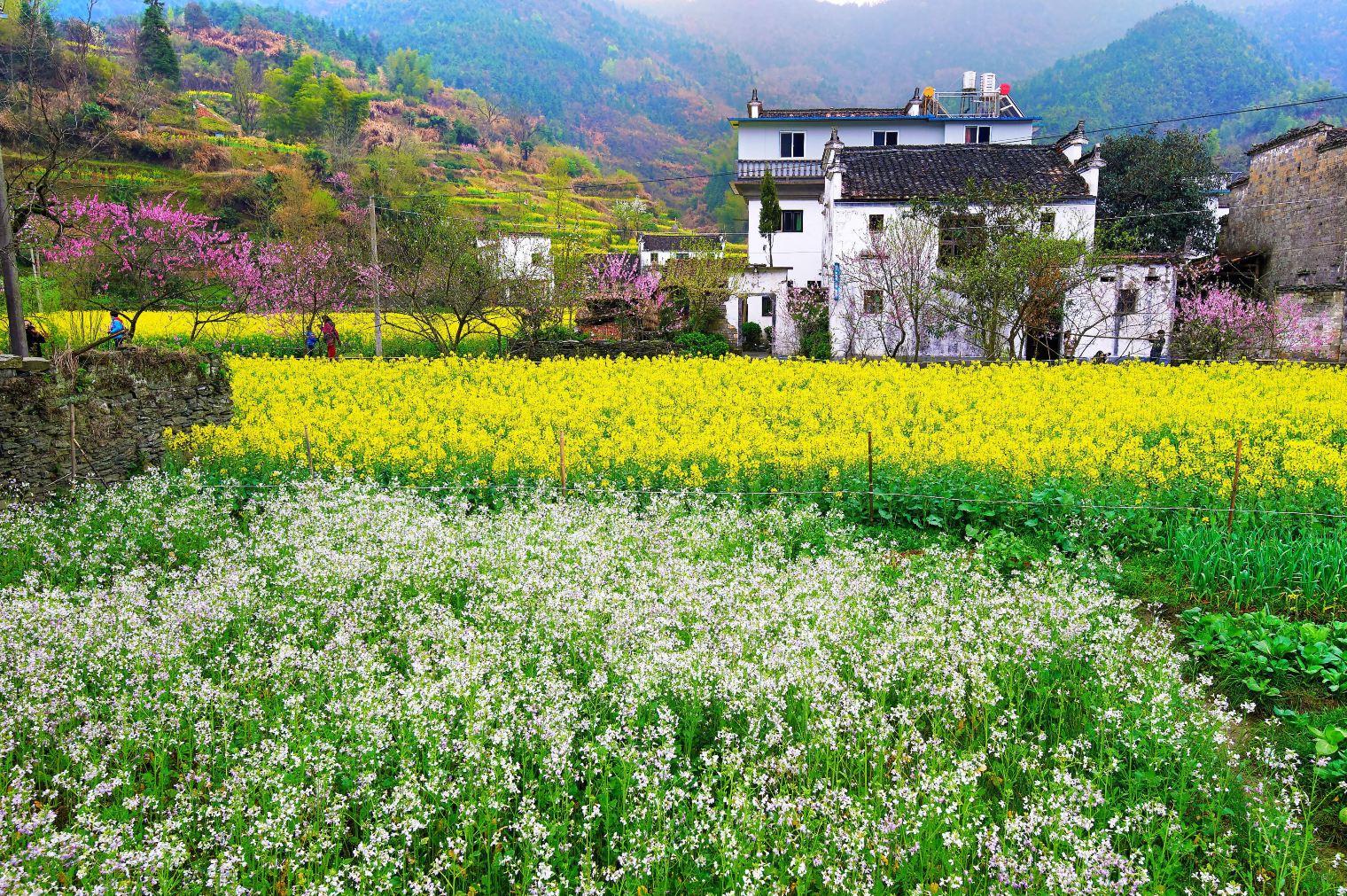 严田是徽饶古驿道上的古村,如今古韵遗风尚存,走入其中可以感受江南水乡的慢生活。油菜花田就在严田村边;游览冲田古街,在金黄油菜花的山间小路行走,一路上油菜花与粉墙黛瓦的徽派建筑交相辉映;山花的烂漫与鸟儿的鸣叫相融,让人情不自禁。