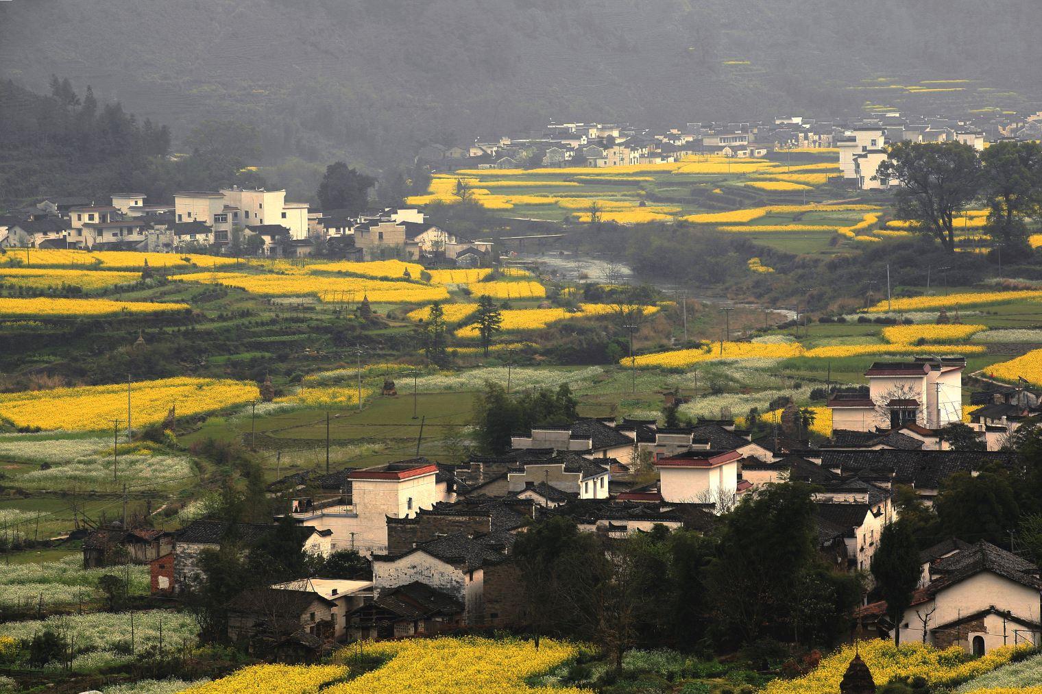 庆源古村位于江西省婺源县东北部的段莘乡;这里峡谷深幽,宽如太行之盘谷,美如武陵之桃源;是始祖几经选择的避乱胜地,素有小桃源之称。每到油菜花开,朴实古老的村落被包围在一片片金色的花海中,到处可见写生与爱好摄影的人们。