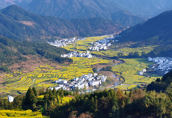 婺源江湾是一座具有徽文化特色的古村落;村中古建筑众多,江湾不仅景色美,更美在无处不在的文化氛围;村中还有不少手艺工坊,特别是一些关于雕刻的店,游人可以亲身体验一番动手的乐趣。春天的油菜花错落有致、金浪翻滚,与梨花、桃花、李花、红花争相斗艳。