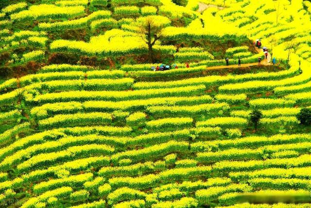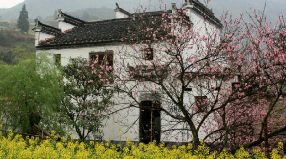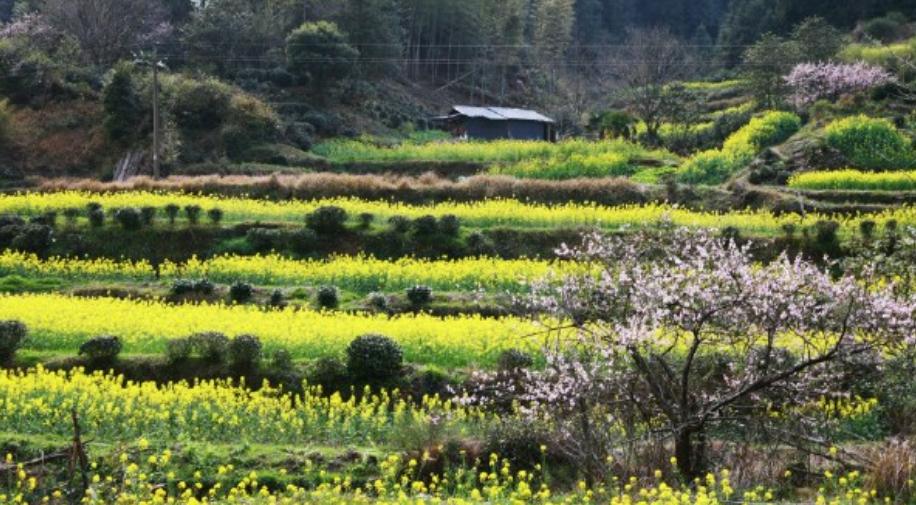 油菜花盛况曾作为背景上过央视春晚汪槎村不仅有和江岭类似的梯田油菜花景观,也有上百年的徽派民居,就连房前屋后堆积的劈柴,也成了这里的一道景观,这里海拔要比庆源低,一到花开季节,不仅山坡上、田野里的油菜花鲜黄一片,就连那些房前屋后、溪边地头的桃花、梨花,也已经浪漫开放了。