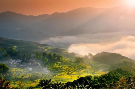 篁岭的油菜花很出名,篁岭的赏花,融景于情,徽州老宅的白墙黛瓦,油菜花花海的金黄与碧绿,高山地区特有的山间云雾缠绕,都让篁岭美成一个春天。