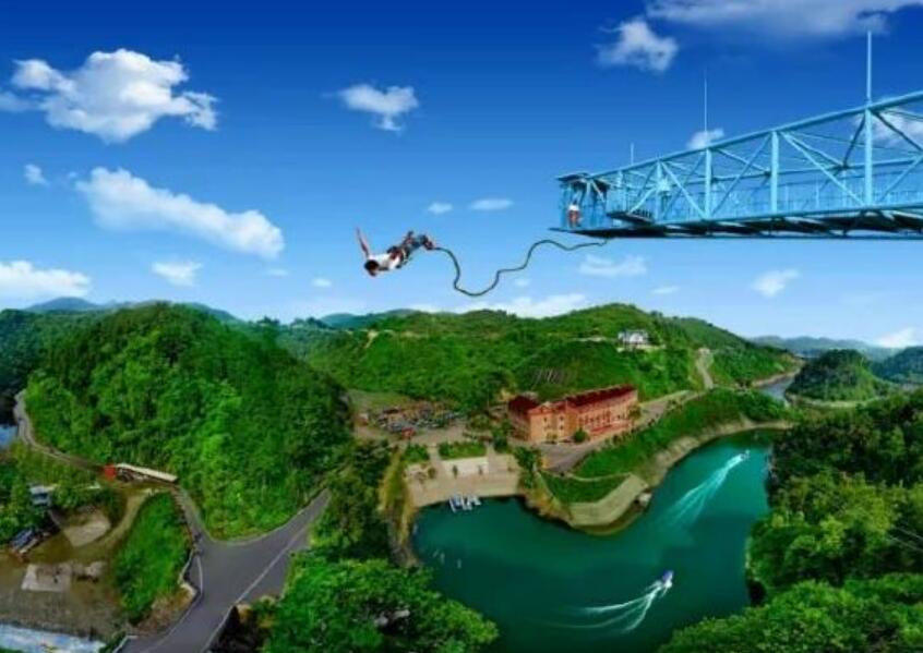 “武当山下出平湖,捧圣崖上观高台,飞身一跃三千尺,天下英雄任逍遥”,这四句诗描述的就是位于武当山翡翠峡快乐谷旅游区内的中国第一峡谷蹦极——武当蹦极。蹦极垂直高度75米,是目前为止全国最高的峡谷蹦极,也是唯一一个乘坐观光电梯直达的峡谷蹦极,电梯三面透视。