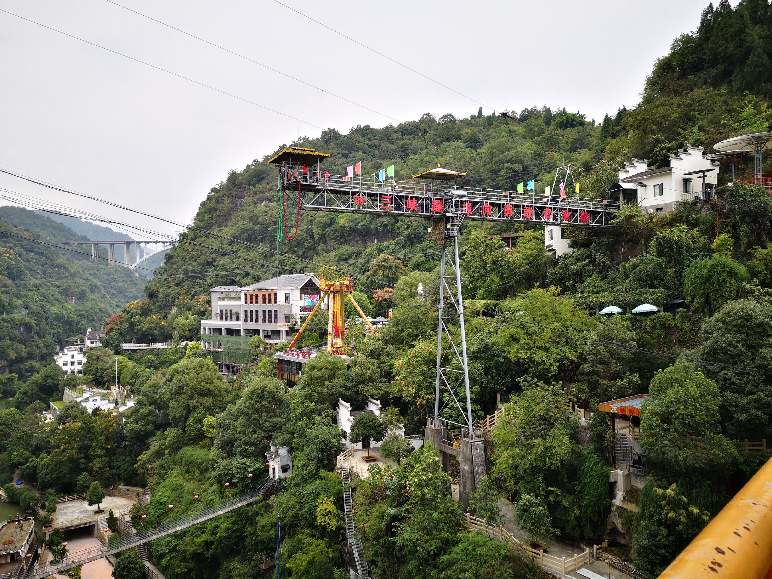 三清山蹦极在三清山神仙谷景区。整个蹦极高度50多米,为华东地区最高的蹦极项目,是江西省唯一的蹦极的蹦极项目。三清山蹦极惊险刺激,蹦起来,各种姿势,各种尖叫,跳下过程中,让你极速俯视三清山漂亮山谷河流,心脏好像要从胸腔中崩裂开来,尽情享受每一根汗毛都颤栗的感觉。