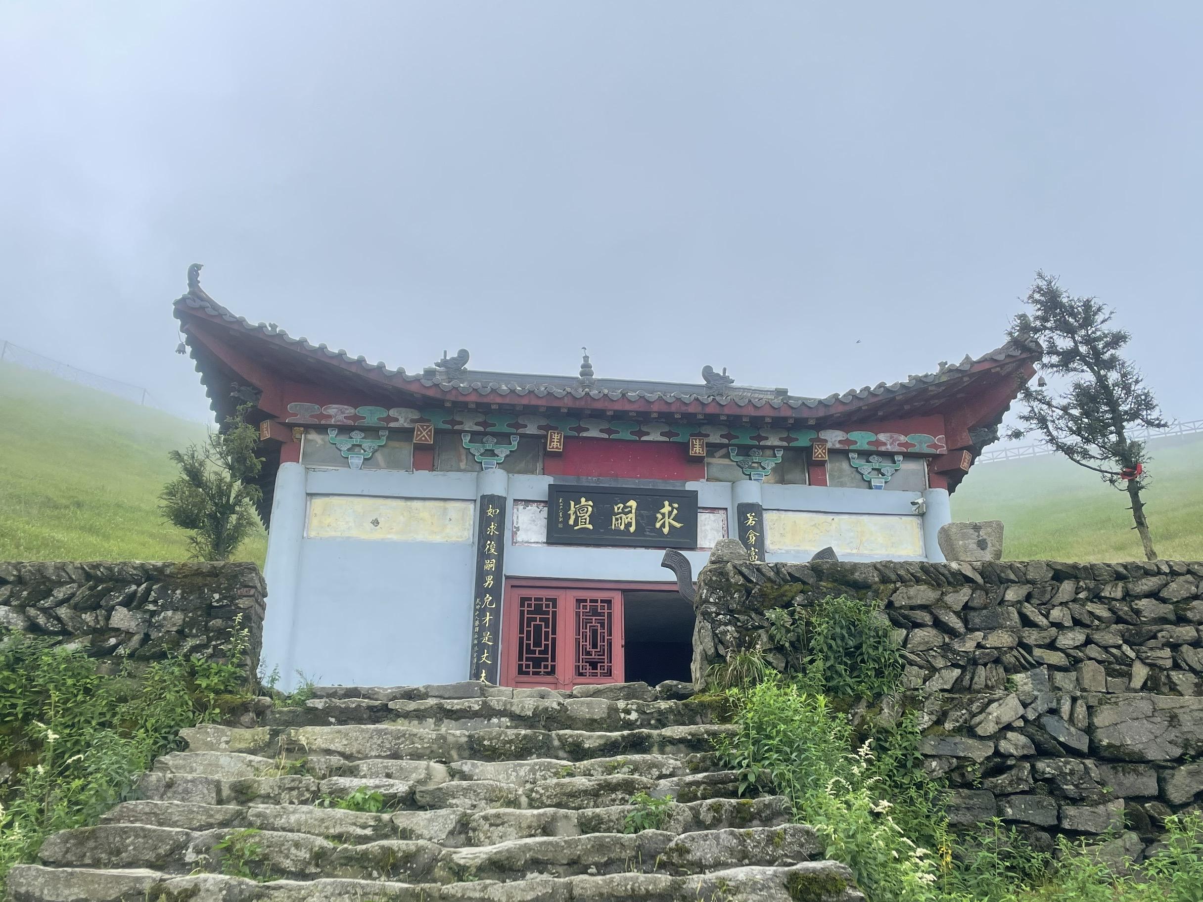 D1上午 上行:石鼓寺-紫极宫(一级索道)-福星谷-许愿桥-玻璃眺台-回音谷(二级索道)-古祭坛群-金顶