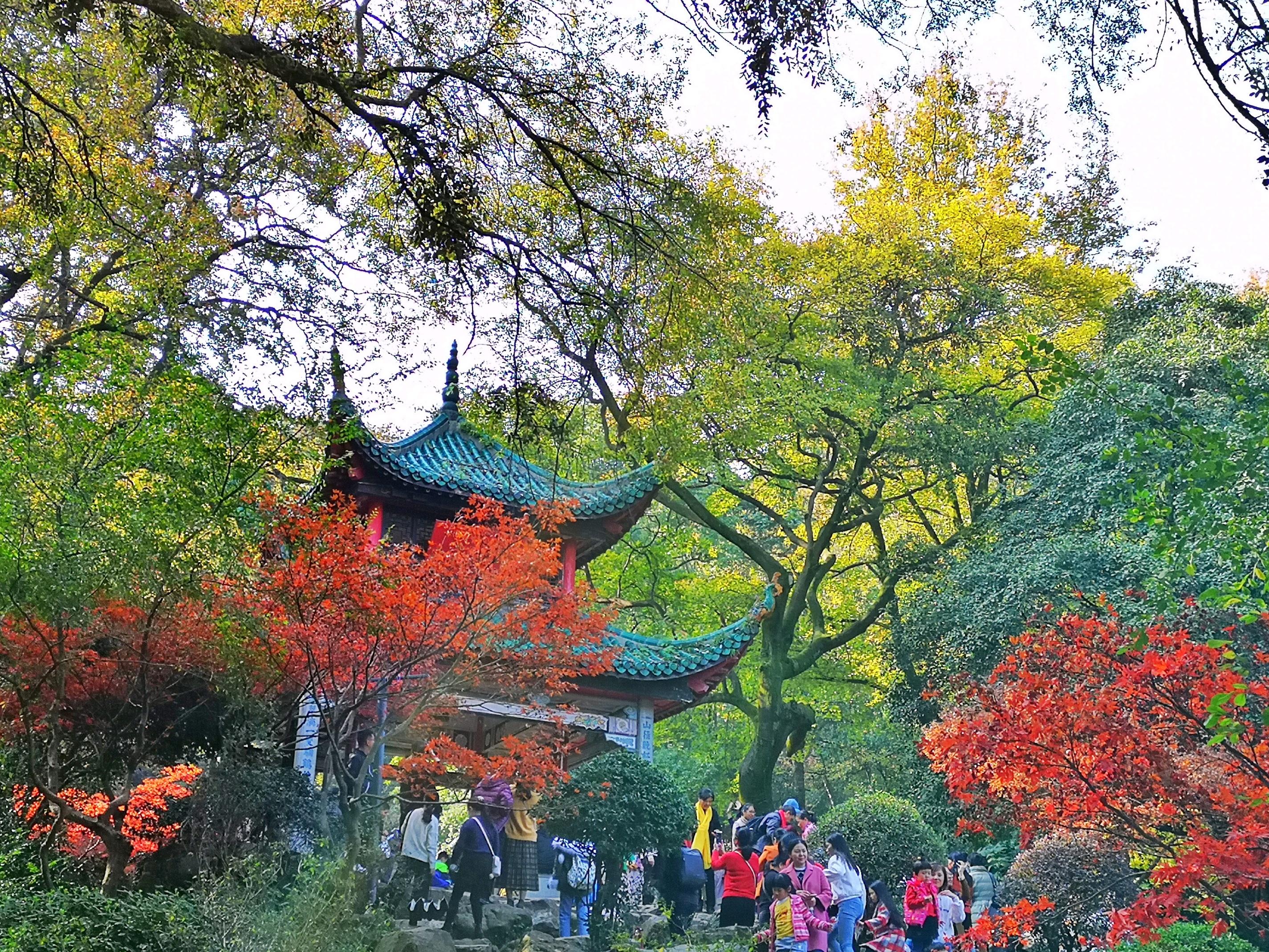 该亭始建于清代乾隆年间,取杜牧诗句“停车坐爱枫林晚,霜叶红于二月花”之意命名。亭子古朴典雅,亭内金柱丹漆,四个翼角高翘,上面盖着绿色的琉璃瓦。爱晚亭原名红叶亭,后由湖广总督毕沅,据“停车坐爱枫林晚,霜叶红于二月花”的诗句,更名爱晚亭。