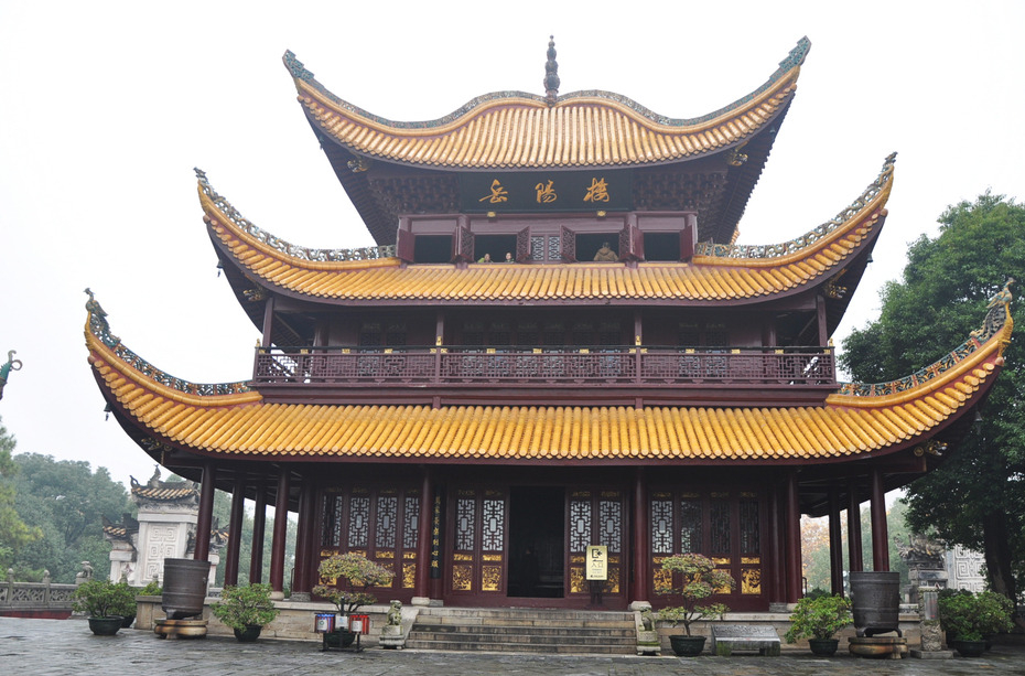岳阳楼,位于湖南省岳阳市岳阳楼区洞庭北路,地处岳阳古城西门城墙之上,紧靠洞庭湖畔,下瞰洞庭,前望君山;始建于东汉建安二十年(215年),历代屡加重修,现存建筑沿袭清光绪六年(1880年)重建时的形制与格局。
