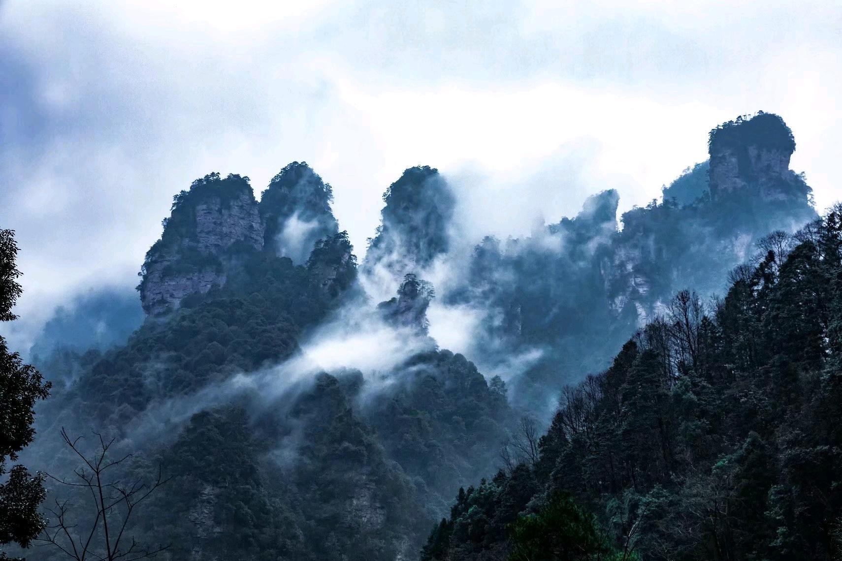 四、张家界十里画廊在这条长达十余里的山谷两侧,有着丰富的自然景观,人行其间如在画中。沟旁黛峰屏列,山上的岩石形成了200来尊似人似物、似鸟似兽的石景造型。寿星迎宾:在十里画廊观光,第一个景点便是“寿星迎宾”。那一座酷似老寿星的石峰,形同一个耄耋老人正招手示意,喜笑盈盈,恭候来客光临哩!采药老人:又名老人岩、老人峰,形象栩栩如生。这位采药老人,身背竹篓,佝偻而行,他正采得一背篓珍贵药材,一步一步满载而归!有诗云:“采药老人应解语,当年何术慰苍生。”