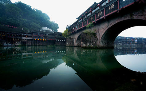 在凤凰古城中,最有名的建筑莫过于万寿宫、万名塔、准提庵、天王庙、虹桥风雨楼及众多美轮美奂的建筑。这些建筑都将凤凰人的追求与审美观念表现得淋漓尽致,给人目不暇接之感。那种超凡脱俗的建筑艺术,细论哪座建筑大可不必,单就那古街古巷看看,也是一种痛快淋漓的艺术享受。