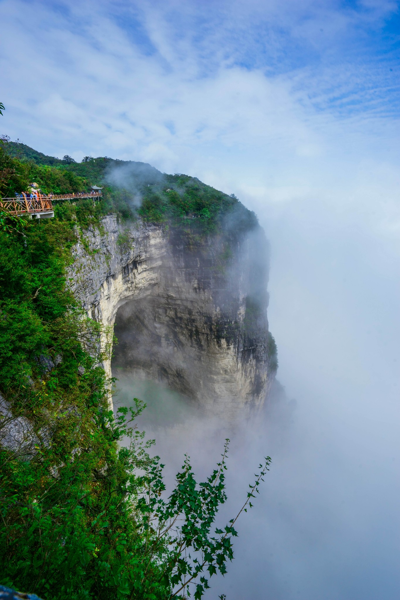天门山主峰海拔1518.6米,它是张家界海拔最高的山,古称嵩梁山,又名梦山、方壶山。