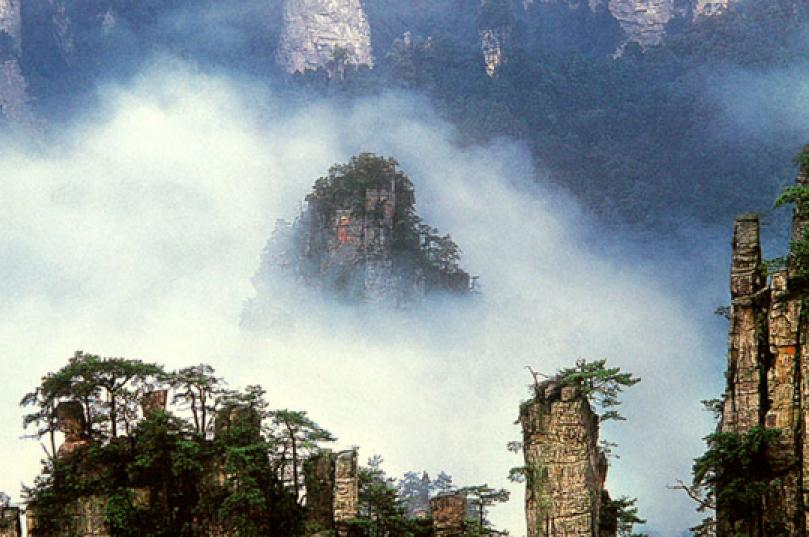 武陵源独特的石英砂岩峰林为国内外罕见,成为它奇绝超群的胜景。在三百六十多平方公里的面积中,据航测所知有山峰三千多座,垂直四百米以上的石峰有一千余个。