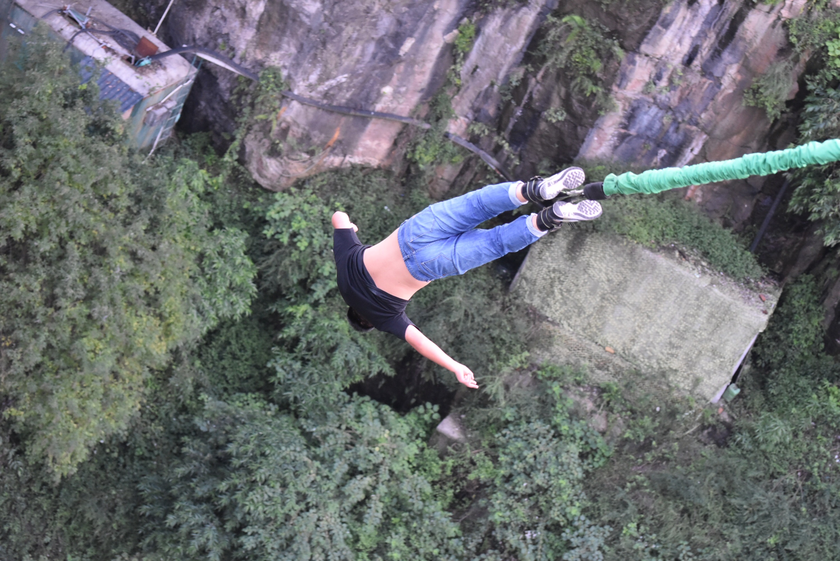 张家界大峡谷玻璃桥高空蹦极是目前世界上垂直落差最大的商业蹦极。体验者在300米的高山峡谷间自由落体,反复多次的弹起又落下,体验让人心跳尖叫的惊险与刺激。