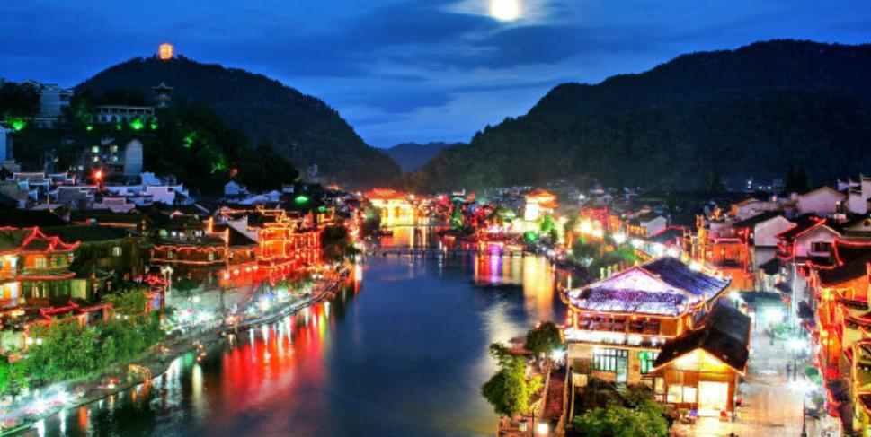 凤凰古城,位于湖南省湘西土家族苗族自治州的西南部,占地面积约10平方千米,由苗族、汉族、土家族等28个民族组成,为典型的少数民族聚居区。凤凰古城建于清康熙四十三年(1704年),东门和北门古城楼尚在。城内青石板街道、江边木结构吊脚楼,以及朝阳宫、古城博物馆、杨家祠堂、沈从文故居、熊希龄故居、天王庙、大成殿、万寿宫等建筑,全都透着古城特色。