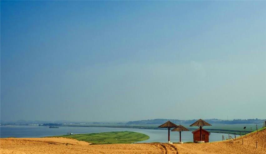 临湘江南大漠因矿砂颜色更接近银色,在月光下更是银光耀眼,称为“银沙滩”面积约3000余亩,深50多米,储沙近亿立方米。早晨,沙滩在太阳光的照射下,金光闪闪,故又称“金沙滩”。