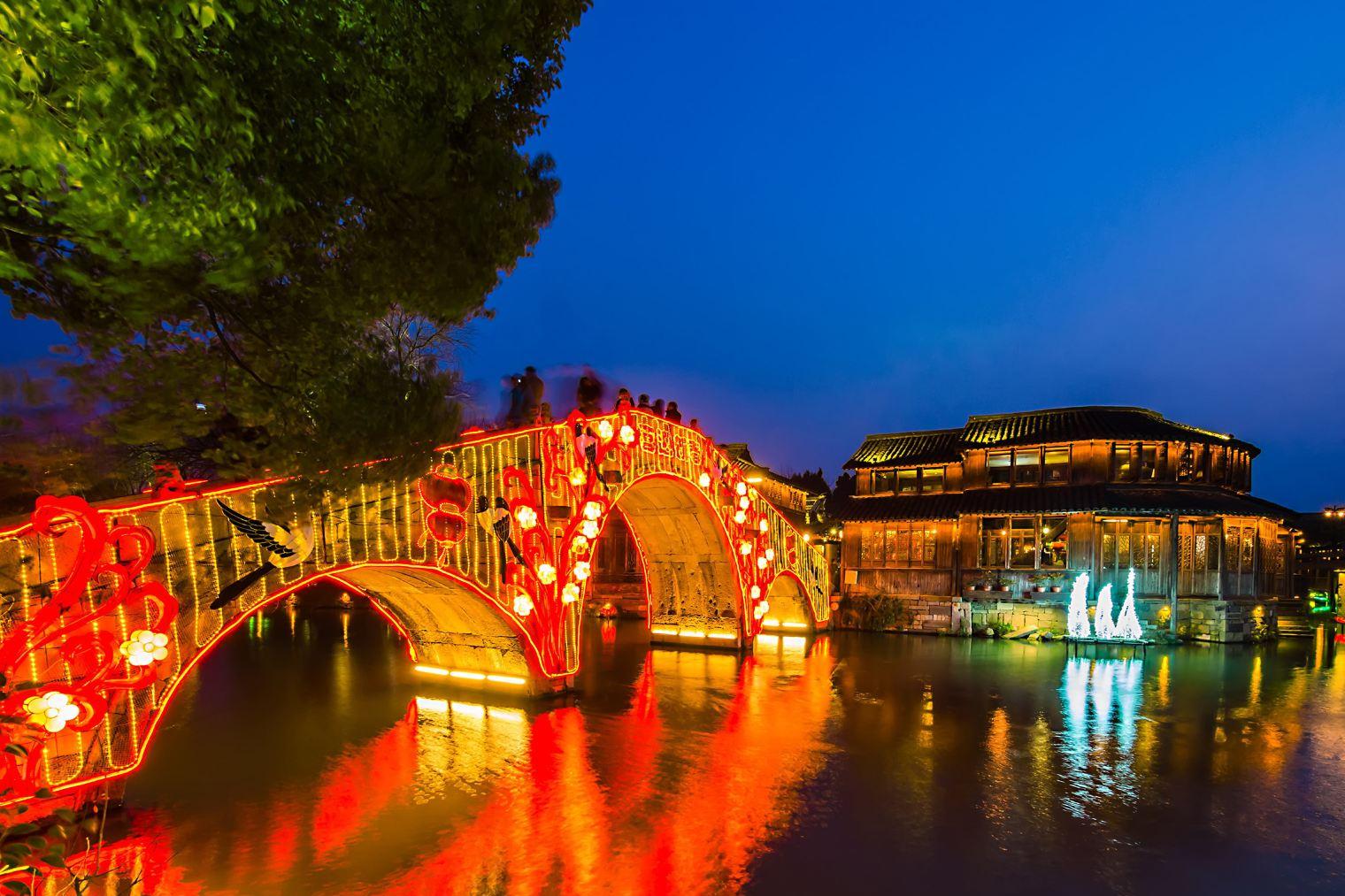 乌镇是桐乡北郊一座历史悠久的江南古镇,主景区分为西栅、东栅,赏西栅夜景、坐摇橹船、看民俗表演,是游人不会错过的体验。这里也是黄磊和刘若英主演的《似水年华》的取景地。