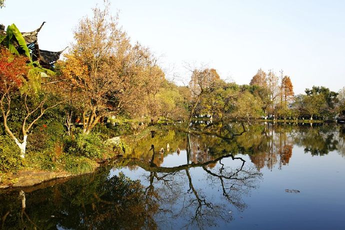 “三潭印月”泛指西湖中的三潭印月岛,以及水中的三个宝瓶状小石塔,该岛位于西湖之中,又名“小瀛洲”。它不仅属西湖十大风景名胜,而且与西湖中的另两个小岛:湖心亭(蓬莱)、阮公墩(方丈)珠联壁合、相映成趣,构成一幅人间仙境图,恰到好处地诠释了杭州这座美丽的天堂城市。