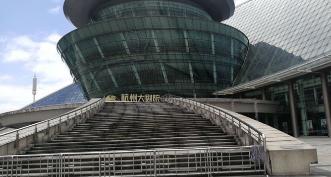 杭州大剧院由歌剧院、音乐厅、可变剧场、下沉式露天剧场四个场馆及室外文化广场组成,整体造型形似一轮弯月,与对面的金球——“国际会展中心”交相辉映,形成“日月同辉”的美好景象。