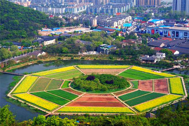 八卦田八卦田,位于杭州西湖东南侧玉皇山南麓,东临南复路,南接虎玉路,占地150亩,原为南宋皇家籍田的遗址,已有上千年的开垦历史。八卦田遍种油菜,每到暖春时节,油菜盛开,是杭州主城区油菜花开得最美的地方。籍田是古代中国以农为本的农耕文化的缩影,是古代帝皇通过神圣仪式活动对农业生产予以重视的场所。南宋绍兴年间,宋高宗赵构为表示对农事的尊重和对丰收的祈祷,采纳了礼部官员的提议,在杭州城南郊开辟籍田,在每年春耕开犁时,皇帝亲率文武百官到此祭祀先农。到明以后,籍田一直作为良田由附近居民耕作。