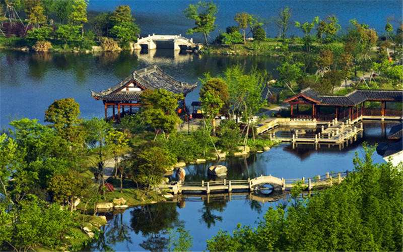 度假区内的核心——湘湖,以风景秀丽而被誉为杭州西湖的“姊妹湖”。是浙江文明的发祥地,出土了世界上最早的独木舟,这里发掘的跨湖桥文化遗址,是国家级文物保护单位;湘湖城山之颠的越王城遗址,为迄今为止保存最好的古城墙遗址,见证了“卧薪尝胆”的历史风云;湘湖是唐代大诗人贺知章的故里,李白、陆游、文天祥、刘基等历代名人在此留有不朽诗文。